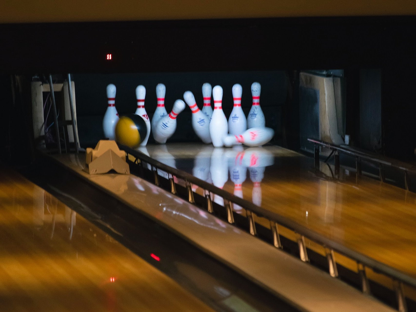 Wie beim Kegeln geht es darum, mit einer Kugel die Kegel am Ende einer Bahn zu treffen und sie nach Möglichkeit umzulegen.